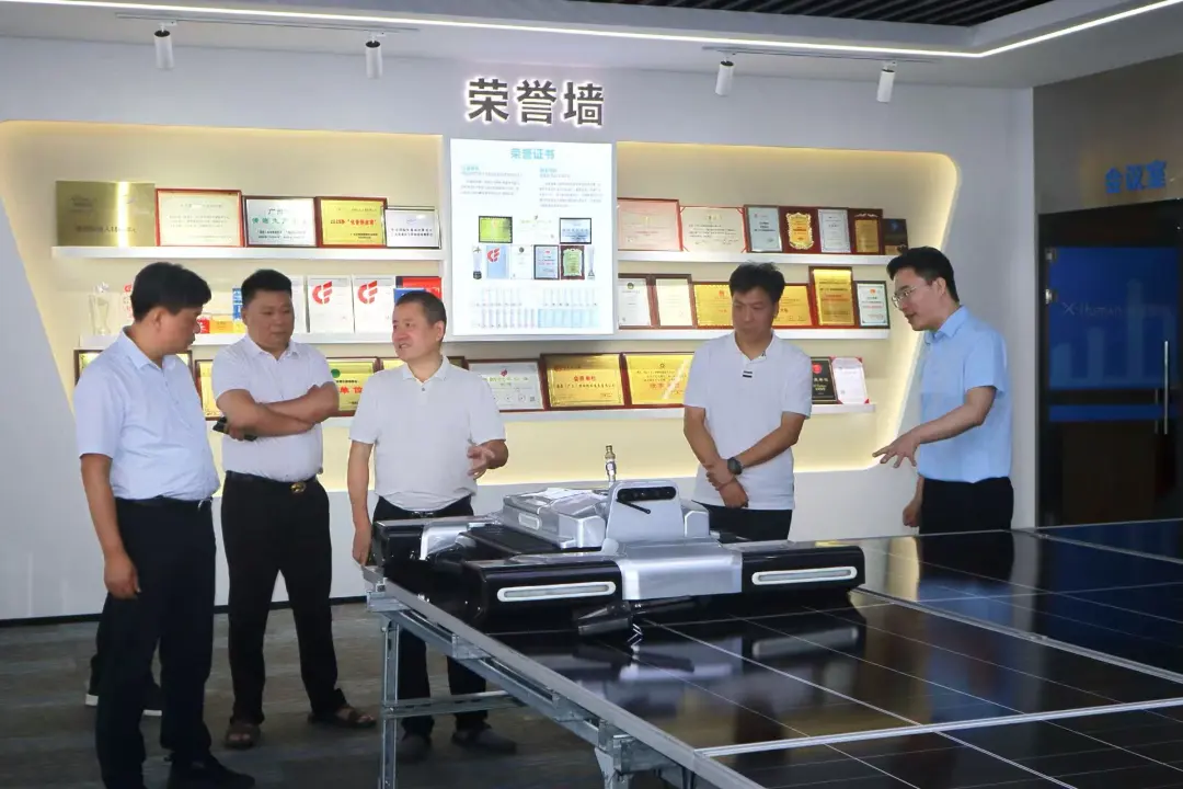 Lingdu Intelligence is a high-tech enterprise specializing in R&D, manufacturing, sales, and brand operations of cleaning robots. With an innovation-driven core, the company is dedicated to providing intelligent cleaning solutions for scenarios such as high-altitude curtain walls and PV power stations. During the inspection, Secretary Ye Yu and the delegation visited Lingdu Intelligence's R&D center and exhibition hall, conducting an on-site review of the company's technological innovations, product development, market applications, and future development plans in the smart cleaning sector. Company executives provided detailed reports on corporate development progress, core competitive strengths, as well as current opportunities and challenges.